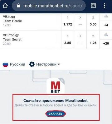Мобильная версия БК Марафон: скачать и установить приложение на телефон
